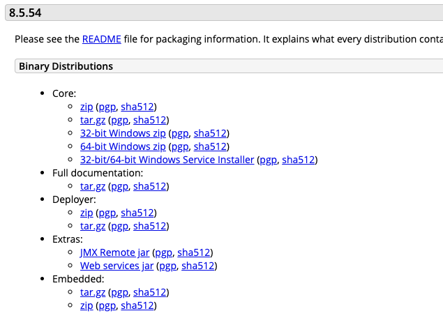 여기서는 톰캣의 8.5버전을 선택하여 설치하려고 한다. ( 참고로 자바 11이 설치되어 있는 상태이다. )