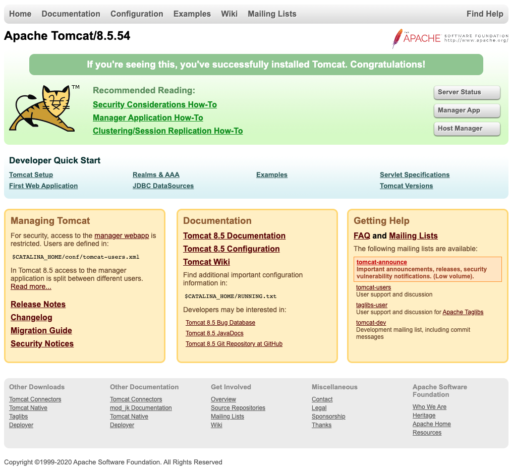 톰캣을 키고나서 http://localhost:8080/에 접속하여 고양이 표시가 나오면 성공이다.