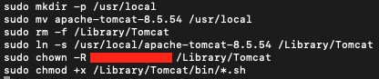 sudo chmod +x /Library/Tomcat/bin/*.sh (실행 권한 수정)