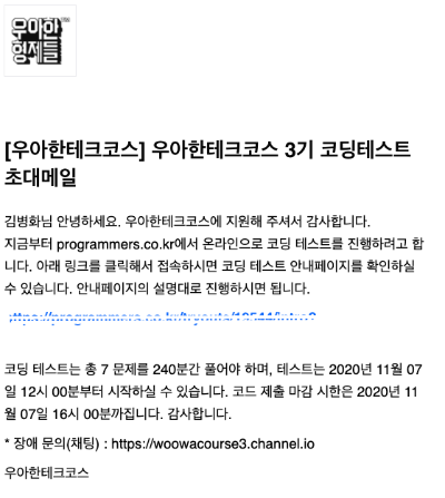 지원서를 제출하고 나니 코딩테스트 초대 메일이 날라왔다.